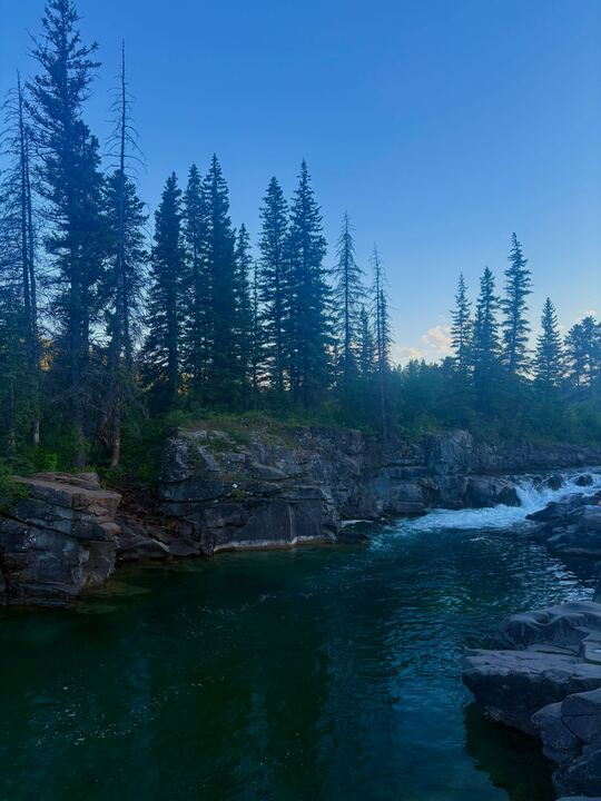 If you’re still looking for adventure after Cameron Falls, head to Red Rock Canyon. Explore the short loop trail showcasing vibrant red stone formations, then take a quick detour to Blakiston Falls. The views of cascading waters set against lush forest are well worth the stop.