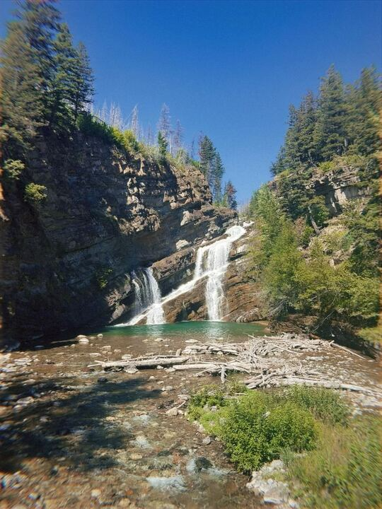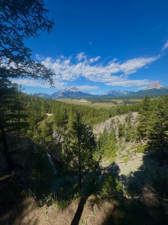The next morning on your 40-minute drive from Pincher Creek to Waterton, stop at the Bison Paddock just outside the park. While not a waterfall, it’s an unforgettable experience to see bison roaming freely against a mountain backdrop.